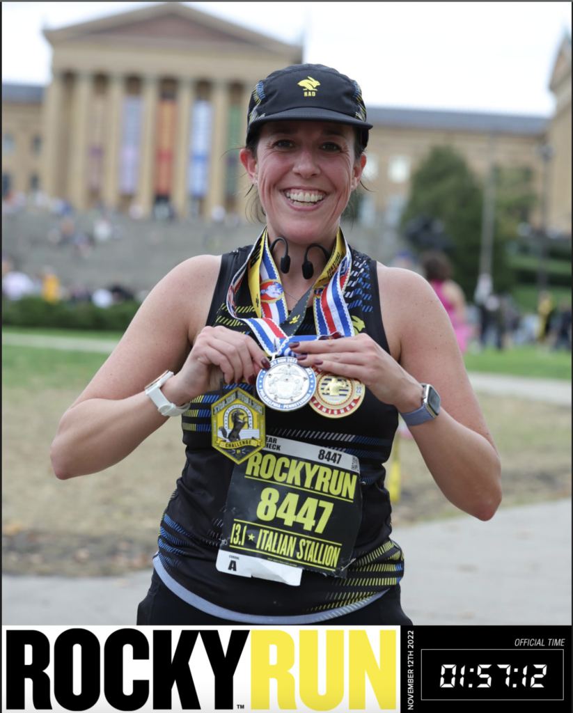 That was the response I got from more than one person after running the Rocky Run in Philadelphia, November 12. Oh, just a little half marathon?! I literally hadn’t said much about it and quite honestly wasn’t even sure I was going to run. Following the Chicago Marathon I was exhausted. While my body felt well enough to run, I was super busy at work and filled in my mornings with extra work rather than running. Not to mention, I just really didn’t feel like running…at all. So from October 9, the Chicago Marathon and November 12 the Rocky Run I ran a total of 19 miles. 19. Eek. While I was seriously wondering how I was going to run 13.1 miles after basically not training, I wasn’t alone. In the car on our way up to Philly my nine year old who doesn’t miss a thing, asked me how exactly I thought I was going to run a half marathon after not running so much for the last month. Very good question, son- very good question!!